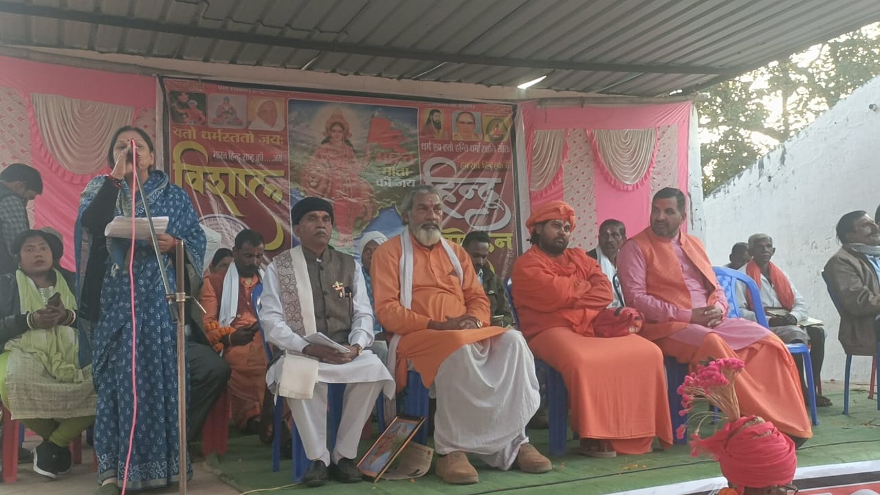 (उदयपुर) उदयपुर के पुरातत्व दार्शनिक स्थल महेशपुर शिव मंदिर परिसर में “विशाल हिन्दू महासम्मेलन” का आयोजन 28 दिसंबर को सम्पन्न हुई। आर एस एस के 100 वर्ष पूर्ण होने के अवसर पर जिले में विभिन्न स्थलों पर ग्राम पंचायत एवं ग्राम वासियों द्वारा हिंदू महासभा का आयोजन किया जा रहा है l सनातन के गौरवशाली इतिहास के प्रति जागरूकता को लेकर सर्व हिन्दू समाज के द्वारा विशाल हिन्दू महासम्मेलन कार्यक्रम भव्य रूप से सम्पन्न हुआ! जिसमें महेशपुर सीमावर्ती ग्राम पंचायत के पावन धरा मे 8 ग्राम पंचायत वं 13 गाँव के ग्रामीण सनातनी कार्यक्रम में शामिल होकर सनातन धर्म,संस्कृति को बचाये रखने के लिए दृढ़ संकल्पित हुए।कार्यक्रम का शुरुआत अतिथियों के द्वारा भारत माता के छाया चित्र में दीप प्रज्वलित पुष्प अर्पित कर किया गया।कार्यक्रम में उपस्थित अतिथियों एवं दर्जनों समाज प्रमुखों को आयोजन समिति द्वारा भारत माता का छाया चित्र एवं साल श्रीफल भेंट कर स्वागत किया गया। महासम्मेलन में लगभग 3000 सनातनी हिन्दू समाज के लोग शामिल हुए और पूरे कार्यक्रम में अपनी सहभागिता बनाए रखें। कार्यक्रम के अगले चरण में अतिथियों द्वारा बारी-बारी से सनातन हिंदू धर्म की रक्षा के लिए अपने उद्बोधन में उपस्थित जनमानस को संबोधित किया गया, और सभी से आग्रह किया गया कि पूरे विश्व में भारत देश ही ऐसा देश है जहाँ सनातनी हिन्दू बड़े संख्या में निवासरत हैं!भारत भूमि की रक्षा के लिए हम सभी को समर्पित भाव से राष्ट्र के लिए काम करने की आवश्यकता पर जोर दिया गया। वर्तमान समय में सरगुजा सहित पूरे छत्तीसगढ़ में धर्मांतरण को लेकर आये दिन बहस छिड़ा रहता है इस विषय पर भी अतिथियों ने चिंतन व्यक्त करते हुए चिंतन व्यक्त करते हुए अपना पक्ष रखा