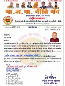 भारतीय जनता पार्टी नीति मंच अल्पसंख्यक मोर्चा के बनाये गए राष्ट्रीय संगठन महामंत्रि बनाया गया है,