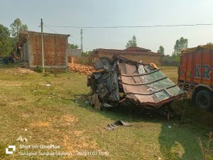 सूरजपुर। जिला मुख्यालय से लगे ग्राम पंचायत कोटमी स्कूल चौक में शुक्रवार की सुबह सुबह एक दर्दनाक सड़क हादसा हो गया। दो ट्रक आमने-सामने टकरा गए, जिससे दो लोगों की मौके पर ही मौत हो गई, जबकि दो अन्य गंभीर रूप से घायल हो गए।