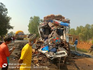 जानकारी के अनुसार, यह हादसा सूरजपुर थाना क्षेत्र के कोटमी में हुआ। टक्कर इतनी भीषण थी कि दोनों ट्रकों के केबिन पूरी तरह से पिचक गए और वाहनों का अगला हिस्सा कबाड़ में तब्दील हो गया।