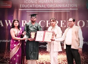 सूरजपुर। जिले के विकासखंड रामानुजनगर के ग्राम सोनपुर निवासी निलेश साहू ने अपने उत्कृष्ट कार्यों से क्षेत्र का नाम रोशन किया है। राजधानी दिल्ली में आयोजित ह्यूमन राइट्स एंड एजुकेशन ऑर्गनाइजेशन के भव्य अवार्ड समारोह में उन्हें डॉक्टरेट की मानद उपाधि से सम्मानित किया गया। यह सम्मान उन्हें आयुष्मान भारत योजना, मानव सेवा तथा कंप्यूटर साइंस के क्षेत्र में उनके उल्लेखनीय योगदान के लिए प्रदान किया गया।