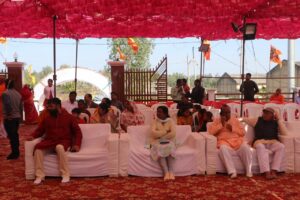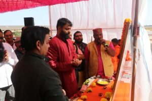 सूरजपुर अनिल साहू सूरजपुर के परशुराम धाम में आज ’’श्री रामलला प्राण-प्रतिष्ठा रामोत्सव’’ के अवसर पर भव्य जिला स्तरीय कार्यक्रम का आयोजन किया गया था। जिसमें रामलला मंदिर अयोध्या के प्राण प्रतिष्ठा का सीधा प्रसारण, मानस गान व आरती जैसे विविध आयोजन शहर वासियों की उपस्थिति में संपन्न हुई। ’’जग-जग जोत जली है.. राम आरती होने लगी है’’ गीत से मानस मंडली ने बहुत ही सुंदर समां बांधा। शहर वासियों ने लाइव प्रसारण के माध्यम से ’’रामलला मंदिर अयोध्या के प्राण प्रतिष्ठा’’ देखा। परिसर में बस राममय माहौल था। अयोध्या में प्राण प्रतिष्ठा होने के पश्चात कलेक्टर श्री रोहित व्यास ने राम भगवान के तैलय चित्र पर पूजा अर्चना कर परशुराम भगवान से आशीर्वाद भी प्राप्त किया। इस अवसर पर मंदिर प्रांगण में उपस्थित लोगों ने क्रमवार भगवान के चरणों में पुष्प अर्पण कर आशीर्वाद प्राप्त किया।