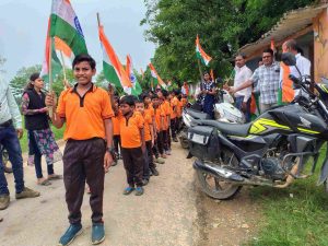 मोर तिरंगा मोर अभिमान ,नारो के साथ पम्पापुर मे निकाली गयी तिरंगा यात्रा