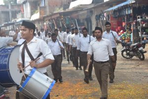 सूरजपुर/ रामानुजनगर – राष्ट्रीय स्वयंसेवक संघ (RSS) की स्थापना के 100 वर्ष पूर्ण होने के अवसर पर रविवार को रामानुजनगर में संघ का शताब्दी वर्ष उत्सव उत्साह और अनुशासन के साथ मनाया गया। इस अवसर पर आयोजित भव्य पथ संचलन में सैकड़ो स्वयंसेवकों ने पूर्ण गणवेश में कदमताल करते हुए हिस्सा लिया। घोष की मधुर धुन पर स्वयंसेवकों का अनुशासित संचलन देखकर नगरवासी अभिभूत हो उठे। पूरे नगर में देशभक्ति और संगठन की भावना का अद्भुत वातावरण देखने को मिला।