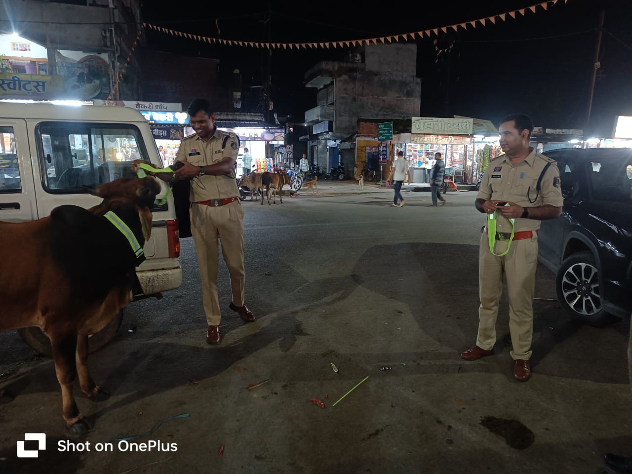 दरसल थाना विश्रामपुर पुलिस के द्वारा सड़क दुर्घटना से बचाव के लिए एनएच-43 एवं अंबेडकर चौक के पास गौवंश के गले में रेडियम युक्त पट्टी लगाया जा रहा था इस दौरान 2 मवेशियों के टैग नंबर मिले जिसकी जानकारी संबंधित विभाग से लेने पर मवेशी मालिक की पहचान तेजन प्रसाद राजवाड़े निवासी हर्राटिकरा थाना जयनगर एवं चंद्रेश्वर राजवाड़े निवासी कुंजनगर थाना जयनगर के रूप में हुई।