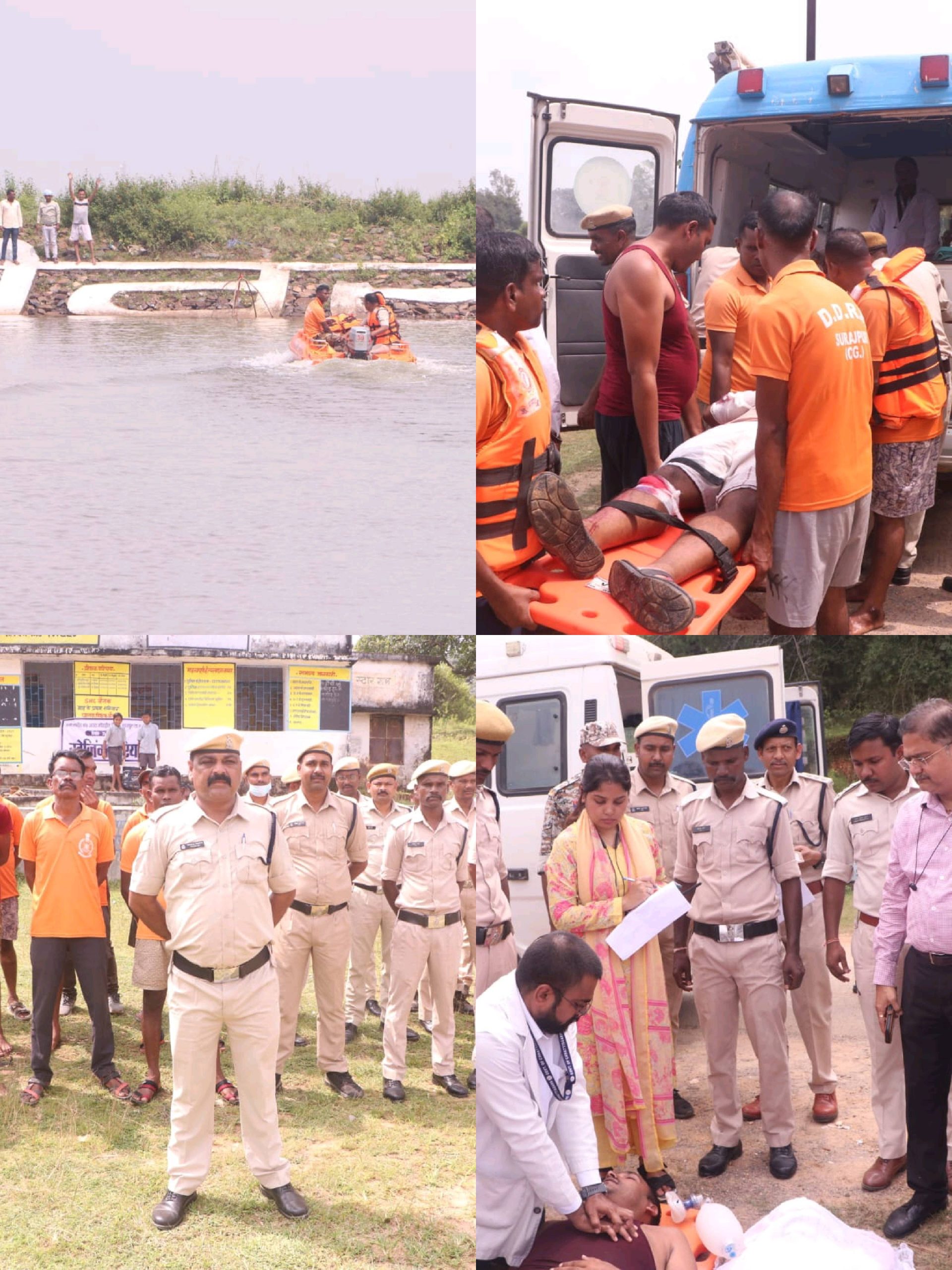 सूरजपुर। राष्ट्रीय आपदा प्रबंधन प्राधिकरण, गृह मंत्रालय भारत सरकार, नई दिल्ली तथा छत्तीसगढ़ राज्य आपदा प्रबंधन प्राधिकरण, राजस्व एवं आपदा प्रबंधन विभाग रायपुर एवं जिला आपदा प्रबंधन प्राधिकरण के संयुक्त तत्वावधान में आज ग्राम देवीपुर स्थित देवीपुर जलाशय एवं छठ घाट, नगरपालिका सूरजपुर में बाढ़ आपदा पर मॉक ड्रिल (डवबा म्Ûमतबपेम) का सफल आयोजन किया गया।