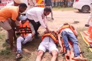 वहीं देवीपुर तालाब में नोडल अधिकारी अजय मोडियम, अनुविभागीय अधिकारी (रा.) रामानुजनगर के नेतृत्व में अतिवृष्टि/बाढ़ की स्थिति का अभ्यास किया गया। इसमें गांव खाली कराने, नाव संचालन, यातायात व्यवस्था, घायलों के सुरक्षित परिवहन, पेड़ में फंसे व्यक्ति को बचाने, सर्पदंश पीड़ितों का उपचार एवं मृतकों को सुरक्षित स्थान तक ले जाने जैसी गतिविधियां शामिल रहीं। इस अभ्यास में बटालियन, एनएसएस एवं डी.डी.आर.एफ. सूरजपुर की टीम ने महत्वपूर्ण योगदान दिया।
