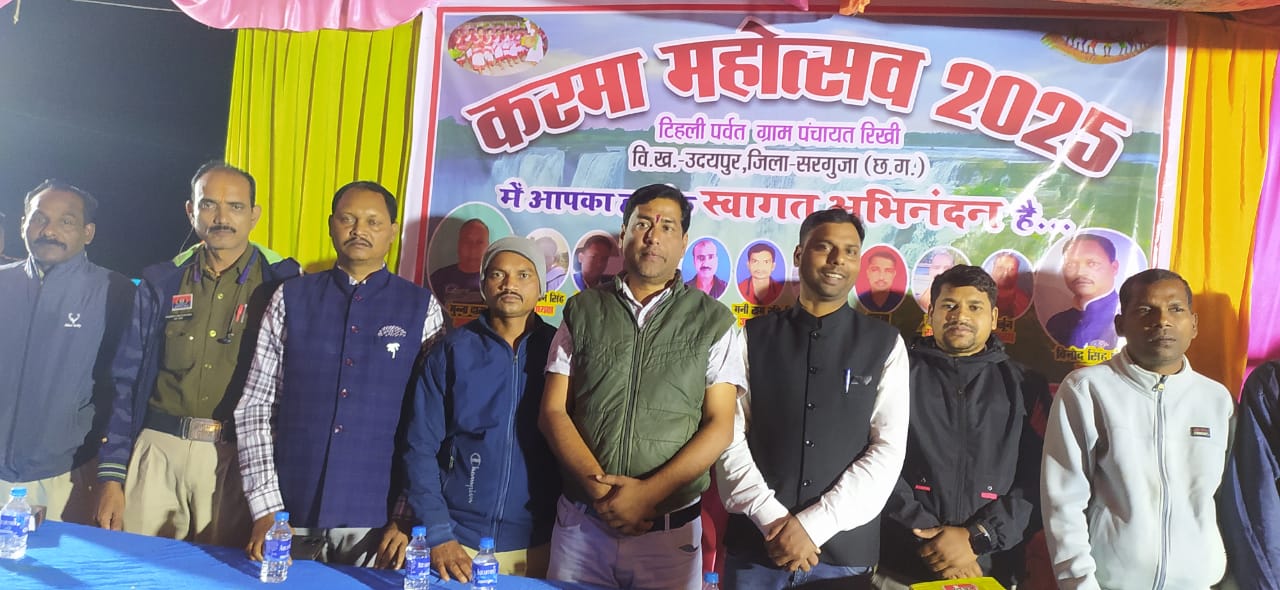उदयपुर सरगुजा। ग्रामीण युवा जन कल्याण समिति द्वारा स्थापित योग आश्रम मे वर्ष 2004 से अनरत 21वां वर्ष 5 नवंबर को ब्लॉक स्तरीय वार्षिक करमा नृत्य समारोह खोन्नधला ,हरापारा, पलका, सरनापारा ,पलका ,रिखी सीमावर्ती पहाड़ी स्थल जिसे स्थानीय लोग टिह ली पर्वत के नाम से जानते हैंl