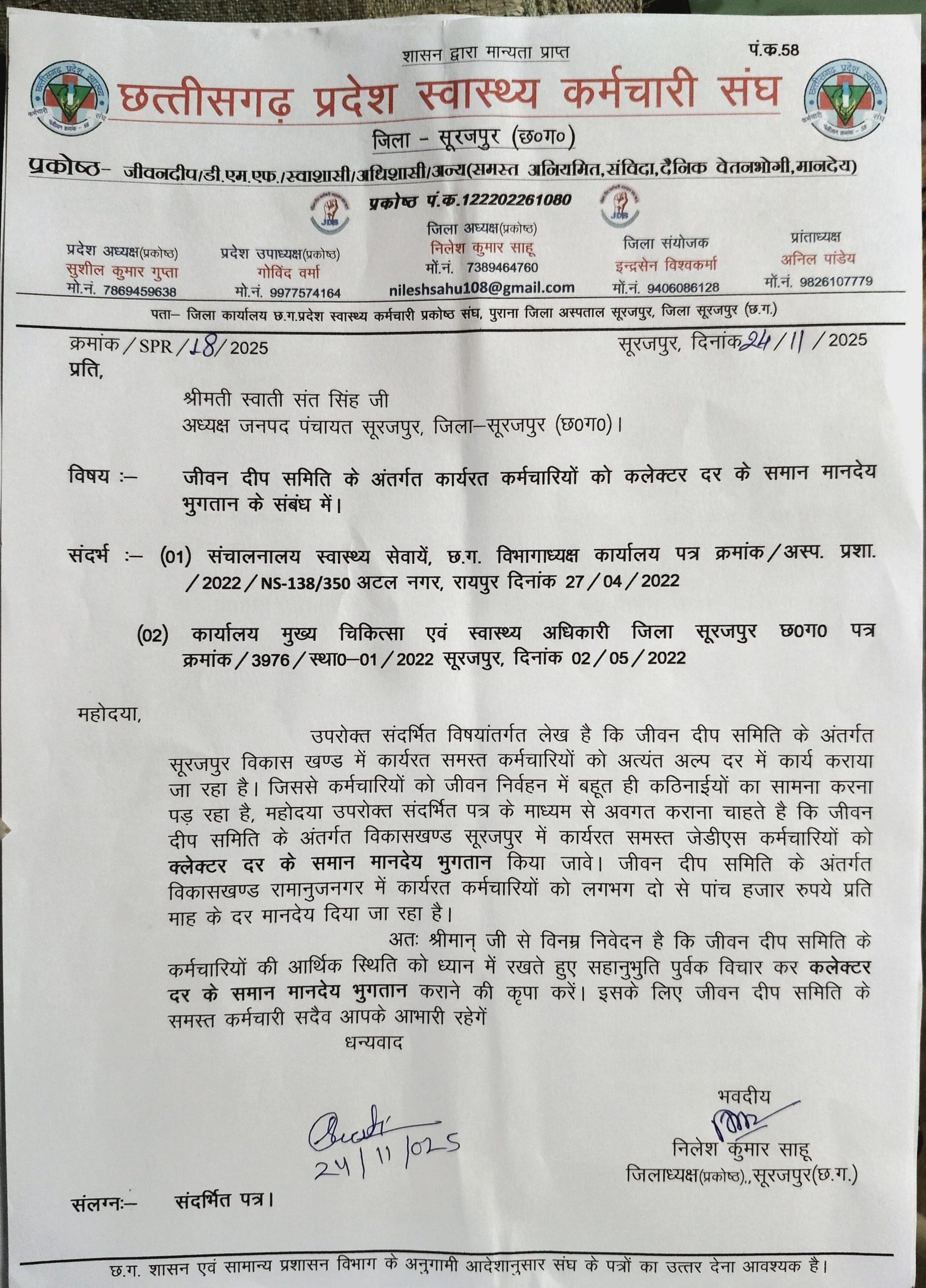 जेडीएस/डीएमएफ कर्मियों की वेतन वृद्धि की मांग तेज जनपद अध्यक्ष से मिला आश्वासन, अधिकारियों की चुप्पी से कर्मचारियों में नाराजगी November 25, 2025 No Comments